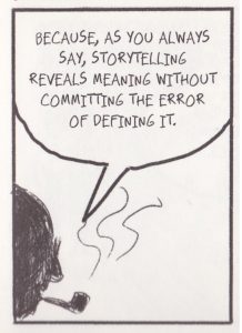 In his graphic novel, Krimstein quotes Arendt back to herself through the voice of her second husband, Heinrich Blucher. He tells her, “as you always say, storytelling reveals meaning without committing the error of defining it.”