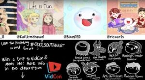 But perhaps the most distinctive aspect of YouTube storytime animation is the sense of community between creators, which is partly due to the nature of the platform itself. Compared to older media platforms, “YouTube provides a sociotechnical platform to support a participatory culture among young YouTubers,” affording “opportunities to connect, collaborate, create, and circulate original media creations” (Chau 2010, p. 73). Often referred to as “The Animation Squad” (Green 2018), storytime animators are known for collaborating and featuring each other in their videos, displaying the featured collaborator in the title. This may involve featuring the other creator’s voice and reintrerpreting their animated character through their art style, or even doing non-animated videos such as drawing tutorials. For example, JaidenAnimations and TheOdd1sOut have collaborated multiple times in both animated and non-animated videos. In other instances, bigger channels like TheOdd1sOut are featured as a way of promoting smaller channels, such as Ivan Animated (2018). It is also common for storytime animators to make videos about their encounters with other YouTube animators, particularly at VidCon, an annual convention for online creators (Let Me Explain Studios 2018). In the cultural system of YouTube, then, animators, like other online content creators, heavily benefit from what Grünewald-Schukalla & Haupt call an “economy of collaboration” (2014, p. 6)