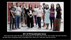 Within a month, YFS sent out the call for applications on their website and on their social media platforms. YFS pledged to support the participants with accommodations, food and even a small stipend for the duration of the project (approximately two months). Along with Lindsey herself, I was involved in the selection process. On their application form, applicants were asked to provide their educational background, their work experience and – if applicable – a portfolio of their artwork (which did not necessarily have to be film- or animation-based). They were also required to include a statement of purpose and a plan to implement what they learn into their future work. Their background, age, gender, economic status and religious beliefs did not constitute a barrier to participation. We received 25 applications from applicants from the various ethnic groups of Myanmar, including the Kayah, the Kayin, the Shan, the Kachin, the Myanmar and the Sino-Myanmar. Their religious backgrounds ranged from Buddhist to Christian. The age bracket of the participants was from 22 to 33 years of age. From the applicant pool, we created a shortlist of 12 participants.