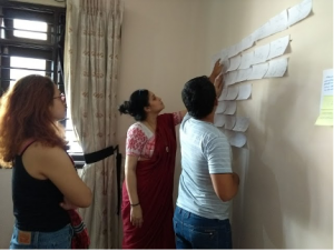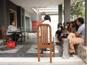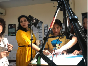 The first part of the workshop called for the students to contact the people (usually an NGO officer) who could connect them with the survivors. They then identified several survivors and met with them at IDP camps or NGO shelters to conduct interviews. The students travelled to the interview sites on their own, without the supervision of the tutors. The presence of such a ‘foreigner’ among the interview crew would draw unnecessary attention from the military and also make the interviewees uncomfortable. The students worked on relationship-building with the different contributors, keeping in mind their lessons on ethical research with human subjects. The students received written permissions for their interviews and promised to keep the contributors in the loop throughout the filmmaking process. From the hours of recorded audio, the students needed to edit a four-minute narrative. My colleague Paromita Vohra, a documentary filmmaker herself, carefully mentored the workshop participants to create these shorter narratives from the lengthy recordings