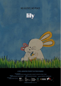 The stories were from four IDP camps of four states: Kayah, Kayin, Shan and Kachin. The first story Kayah Lily, from the Kayah region, told the story of a 13-year-old girl who was raped and finally received justice. We chose to change the context of the story to the animal world, with an innocent rabbit standing in for the survivor and a man in a tiger jacket as the violator. The Kayin region narrative, titled Limbo, was another story of rape – that of a 19-year-old girl who still awaits justice. A single mother to the child born from the assault, she bravely continues to fight against her society for justice. As the survivor underwent many instabilities and transitions over this period, we chose to use sand animation as the means to best translate her state of mind. The third story, Wave, was from the Shan Region. The protagonist was a successful career woman who discussed the hardships she experienced during the war and the reasons she came back to the war zones to continue working on behalf of other women. This was a story of a brave survivor who, during the course of the animation process, bravely agreed to share her real identity and speak up for her community. We choose a contrasting black and white style to share her experience and portray the ends of her character spectrum in terms of the journey from being a victim to a supporter. The Kachin story, called Home, told of a woman residing in the IDP camps who was tormented for years by her husband. We chose a muted colour palette, a realistic pencil rendition and stop-motion animation to portray how domestic violence can seep into any ordinary household.