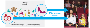 Figure 2 shows how a story’s existents and events are discursively selected and distributed to an audience in non-interactive media such as cinema. If we take the fairytale of Cinderella as an example, it is crucial for the audience to be informed that Cinderella loses her glass slipper on her way out of the castle – the lost slipper eventually enables the prince to find her.
