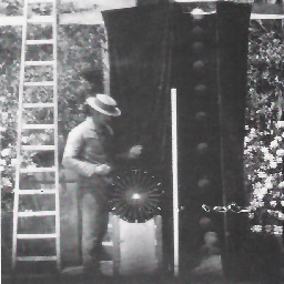 The chronometric dial is essentially a one-handed clock without any numbers. The hand is highly reflective, and so appears white in a monochrome photograph, and it is turned at a constant rate against a circular black velvet background. The clock's hand makes one complete revolution in 90 seconds and the circumference of the circular dial is divided into 18 equal sectors. This device was used by Marey to measure the duration of the intervals of time between successive positions of a moving object. So, a chronophotograph (such as Figure 1) will show several images of a moving object and several images of the clock's hand (this detail is shown in Figure 2). The images of the moving object will be various distances from each other and these distances are proportional to the space that the object has moved. The time taken to travel these distances is indicated by the angles in-between the corresponding positions of the images of the rotating clock hand. The device is useful for at least one other purpose. If the exposure is relatively long the image of the needle is blurred, as shown in Figure 3, and the extent of this blur is proportional to the duration of the exposure. In this way, the one chronophotograph has many uses. The continuous movement of the object is broken down into a number of images of the object in successive positions. The analytical use of chronophotography has been well documented, but the use of the chronometric dial to determine the speed and acceleration of a moving object has largely been overlooked.