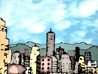 Fig. 9 bFig. 9 - The comparison of a frame in Histoire tragique avec fin heureuse (a) and in this project (b)Fluid simulation is also a tool of 3D computer animation software to simulate the fluid. I used this technique to create watercolour and smearing effects. The image in Figure 10 (a) is original output image from 3D computer program by using toon shading. I then applied watercolour filter in Photoshop to modify the image as shown in Figure 10 (b). The batch mode was used to modify each frame for an animated sequences. These images were brought back into the 3D computer program and applied the fluid simulation to further modify images as shown in Figure 10 (c) as the final appearance.