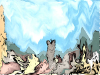 - Fluid simulation in 3D computer software can be used to create watercolour-like effects or smearing effects as shown in Figure 10.