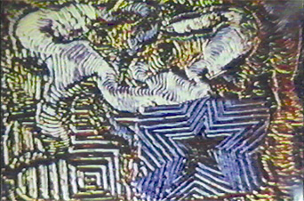 This is echoed in the drawn elements of Beckett's films. While the image plane of Beckett's films can often be described as a cacophony of seething shapes, the actual content is minimal. The star in Evolution of the Red Star serves as a focal point to be acted upon but in and of itself serves no narrative purpose, conveys no meaning. Once the forms are determined there is no introduction (with minor exception) of new material, no cuts to another set of imagery, another treatment, no building of a mythic or symbolic vocabulary within the film. The material is there to be acted upon, via multiple passes through the optical printer with time, scale and position offsets, and color changes. The content is minimal and subsidiary to the outline of the whole.